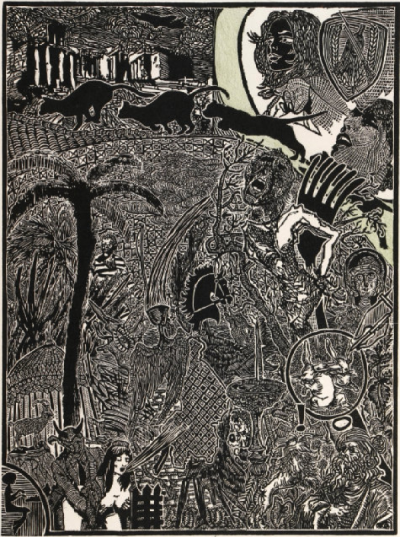 Roofgarden party – coloured wood engraving